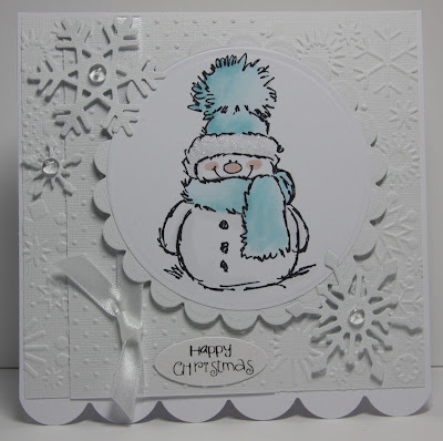 Lovely card Wendy. I do like white on white and this little snowman is really cute.